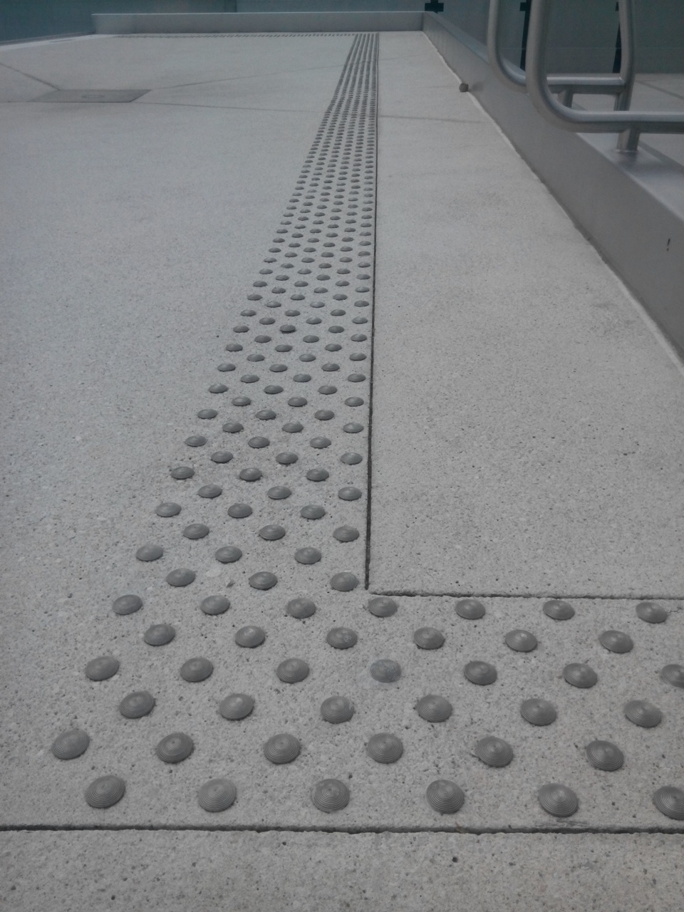 Dans le cadre de la loi 2005-102, l’accessibilité doit être facilitée aux personnes handicapées. Cela comprend notamment la mise en place de BEV (Bandes d’Éveil à la Vigilance).